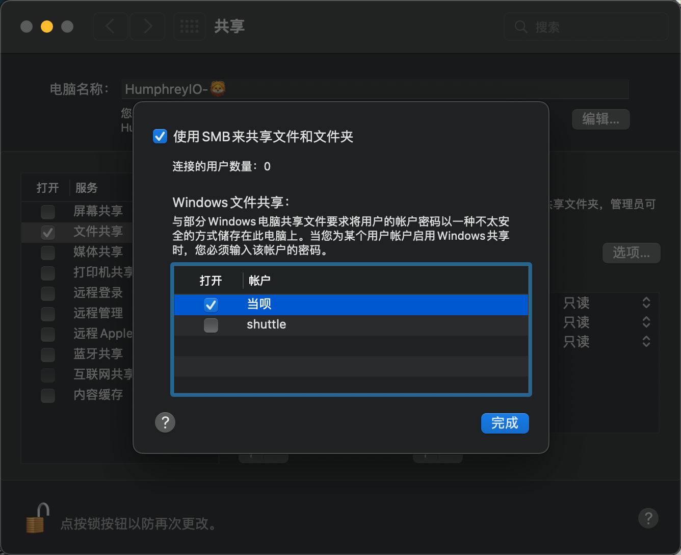 HumphreyDan关于如何在 macOS Monterey 12 上开启 smdba 文件共享的步骤